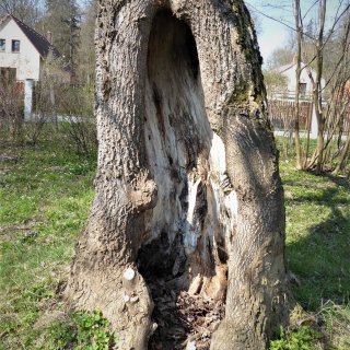 Na kmeni Šternberku jsou patrné rány po odlomení či odřezání větví.