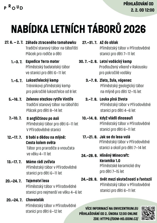 Vypsali jsme nabídku táborů pro léto 2026.