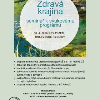 Výukový program Zdravá krajina byl vytvořen s podporou Plzeňského kraje a ve spolupráci se ZČU Plzeň. Zabývá se stavem krajiny a je zaměřen na téma sucho, eroze a povodně.