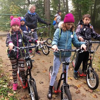 Doporučujeme žáky vybavit cyklistickými přilbami. Pro učitele možnost zapůjčení jízdního kola místo koloběžky.