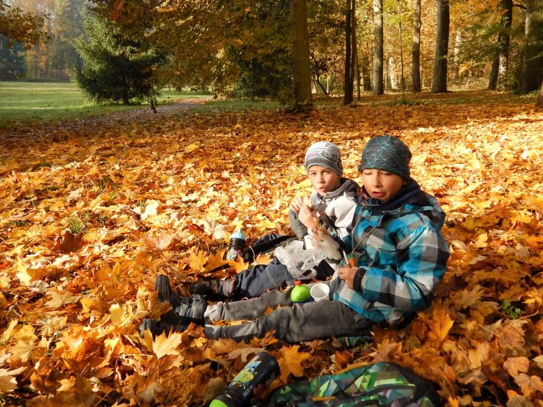 Expedice na koloběžkách za dřevinami v podzimních barvách