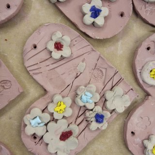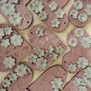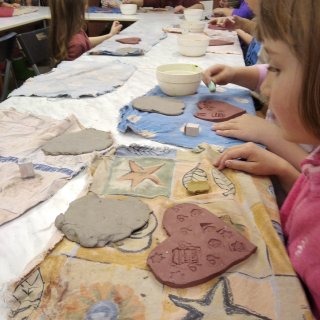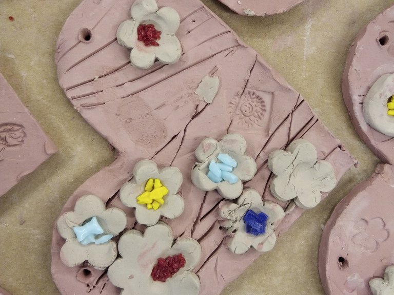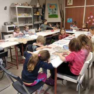 - Samotné tvoření výrobku – příprava – vykrájení tvarů z plátu hlíny, rozdání plátu hlíny. Lepení tvarů na podklad. Výrobek žáci natřou barevnými engobami a nechají ho vyschnout. Výstupem je výrobek z hlíny;